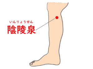 膝の内側、すねの骨の縁を上にたどっていき、指が止まるくぼみにあります。体内の水分代謝を整える効果が期待できます。優しく円を描くように揉みほぐします。