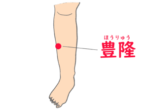膝のお皿と外くるぶしを結んだ線のちょうど真ん中あたりで、すねの外側の筋肉が盛り上がっている部分にあります。余分な水分や老廃物の排出を促し、胃腸の調子にも良いとされます。
